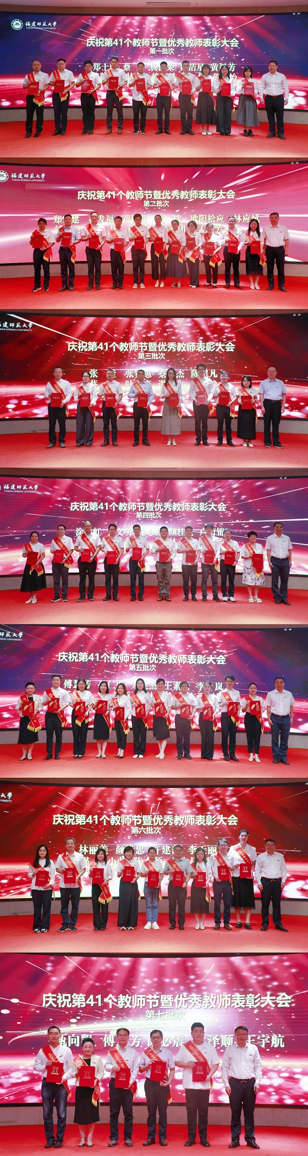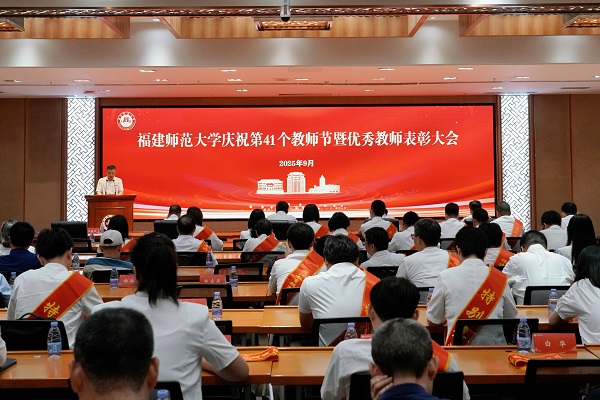 校党委书记潘玉腾代表学校党政向全体教职员工、广大离退休老同志致以节日的问候和美好的祝福。他指出,教师是教育发展的第一资源,是立德树人的中坚力量,承担着以教强师、以教强国的时代重任。希望全体教职员工坚定理想信念,坚守为党育人、为国育才的初心使命,大力弘扬教育家精神,胸怀“躬耕教坛、强国有我”的志向和抱负,自信自强、踔厉奋发,在建设教育强国的广阔实践中展现担当、贡献力量、绽放风采;涵养高尚师德,坚持教书与育人相统一、言传与身教相统一,用欣赏增强学生的信心,用信任树立学生的自尊,用引导助力学生的成才,让每一个学生亲其师、信其道、效其行;锤炼精湛业务,树立终身学习的理念,全面提升自己的综合素养,主动拥抱智能时代,把知识讲透、讲活、讲出精彩,积极投身科研项目,把论文写在祖国大地上,并将最新成果反哺教学;勇于担当作为,以追求卓越的志气、攻坚克难的勇气、团结协作的风气,潜心钻研、协同奋进,共同为谱写福建师范大学高质量发展新篇章、实现“双一流”建设梦想贡献更大力量。